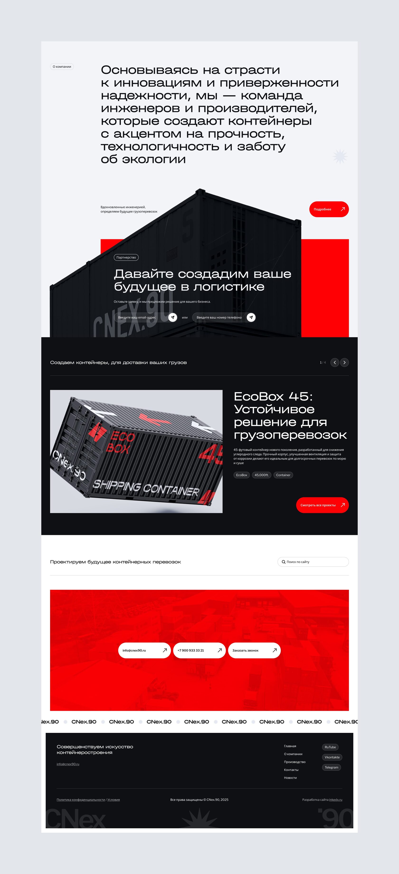 Структура сайта выстроена так, чтобы путь пользователя был интуитивно логичным: от общего представления → детали производства → портфолио → контакты.